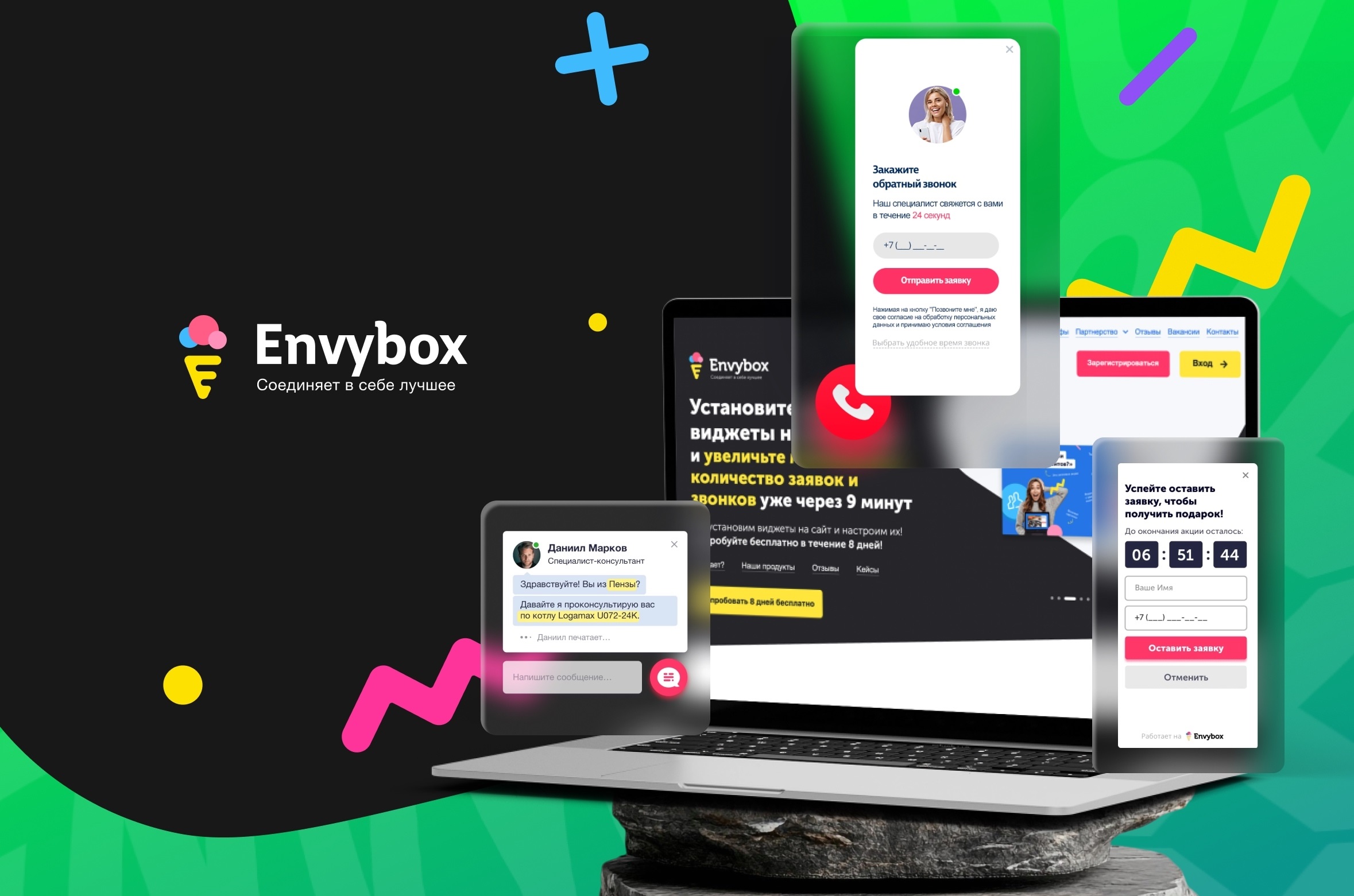 Сервисы Envybox помогают увеличить вовлеченность пользователей, расширить базу контактов, оптимизировать работу сотрудников, стимулировать рост продаж и повысить конверсию в целевое действие. Когда вложенный в рекламу бюджет не дает желаемой отдачи – решением становится наша платформа. Внедрение виджетов, управляющих вниманием пользователей, часто показывает результат уже в первые восемь бесплатных дней использования. Также наши специалисты помогают реактивировать существующую базу клиентов через внедрение CRM, и выстроить с ними регулярное взаимодействие.